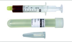 2 Reichlich gewonnenes Material sollte nativ in einem sterilen Röhrchen eingesandt werden. Geringe Mengen mit einem Abstrichtupfer aufnehmen, diesen in das Transportmedium (Abstrichtupfer mit Transport-Gel) verbringen. |