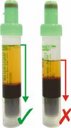 Beachten Sie bitte: Wird bei der Entnahme Citrat als erstes Röhrchen mit einer Butterfly-Kanüle entnommen, kann es zur Unterfüllung kommen. Eine Analyse ist dann nicht mehr oder nur unter Vorbehalt möglich. Deshalb sollte zunächst ein Neutral- oder Vollblutröhrchen zur Entlüftung des Schlauchs abgenommen und verworfen werden, bevor das Citrat-Röhrchen entnommen wird.